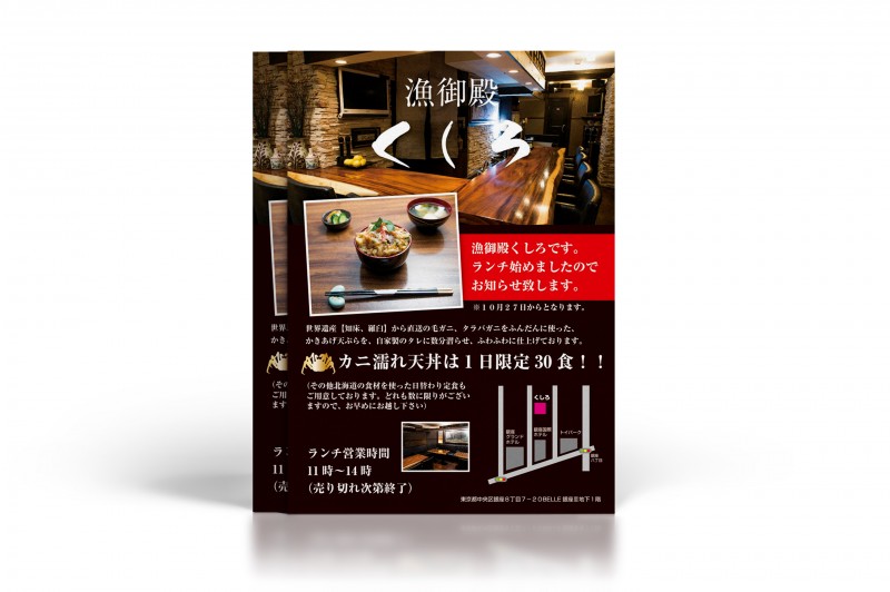 チラシ制作事例 – 海鮮居酒屋のランチメニュー開始を宣伝するチラシデザインASOBOAD。