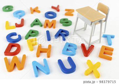 玩具の勉強机とアルファベット.英語の勉強イメージの写真素材98379715- PIXTA。
