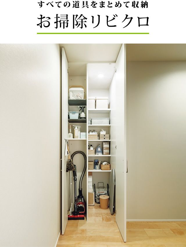 お掃除道具収納が楽な造り付け収納。水戸市の注文住宅ライフボックス:性能ばっちり納得価格デザイン力。