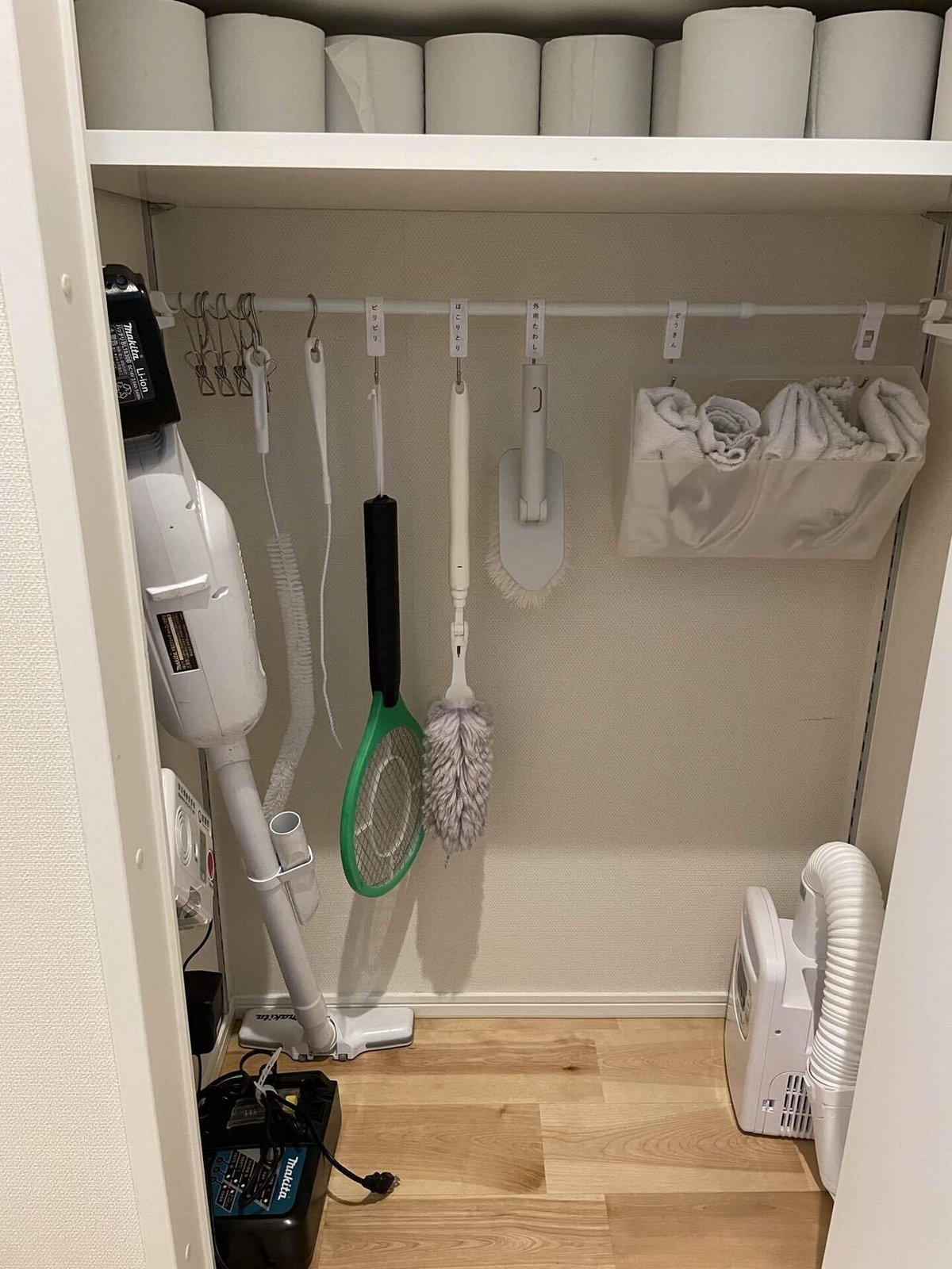掃除機収納庫 幅40cm 掃除道具をひとまとめ ダイソン マキタ 対応 充電用コード。
