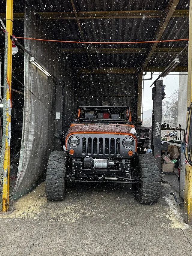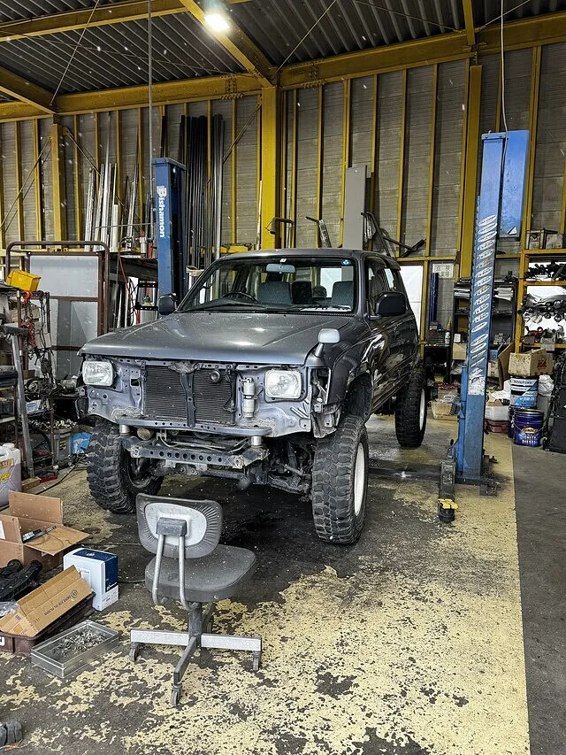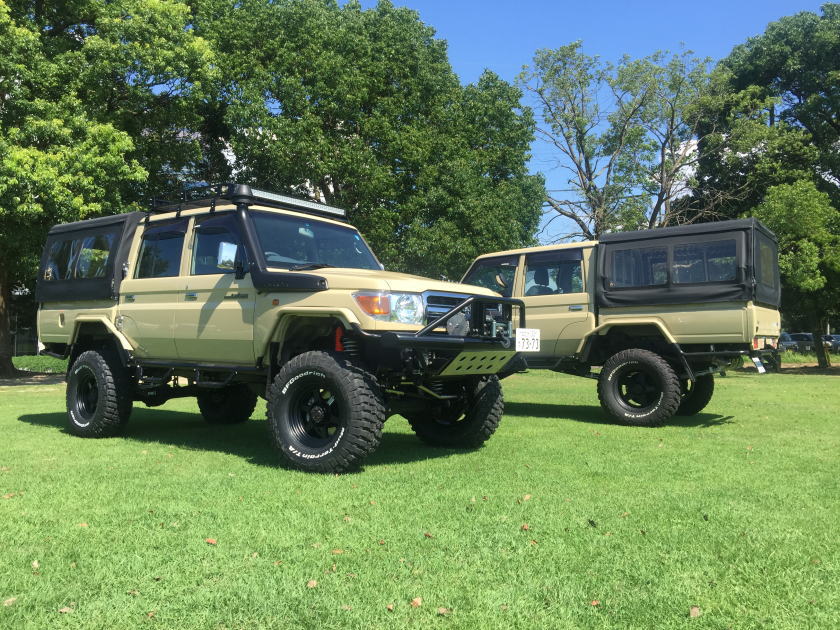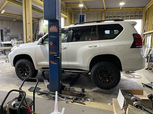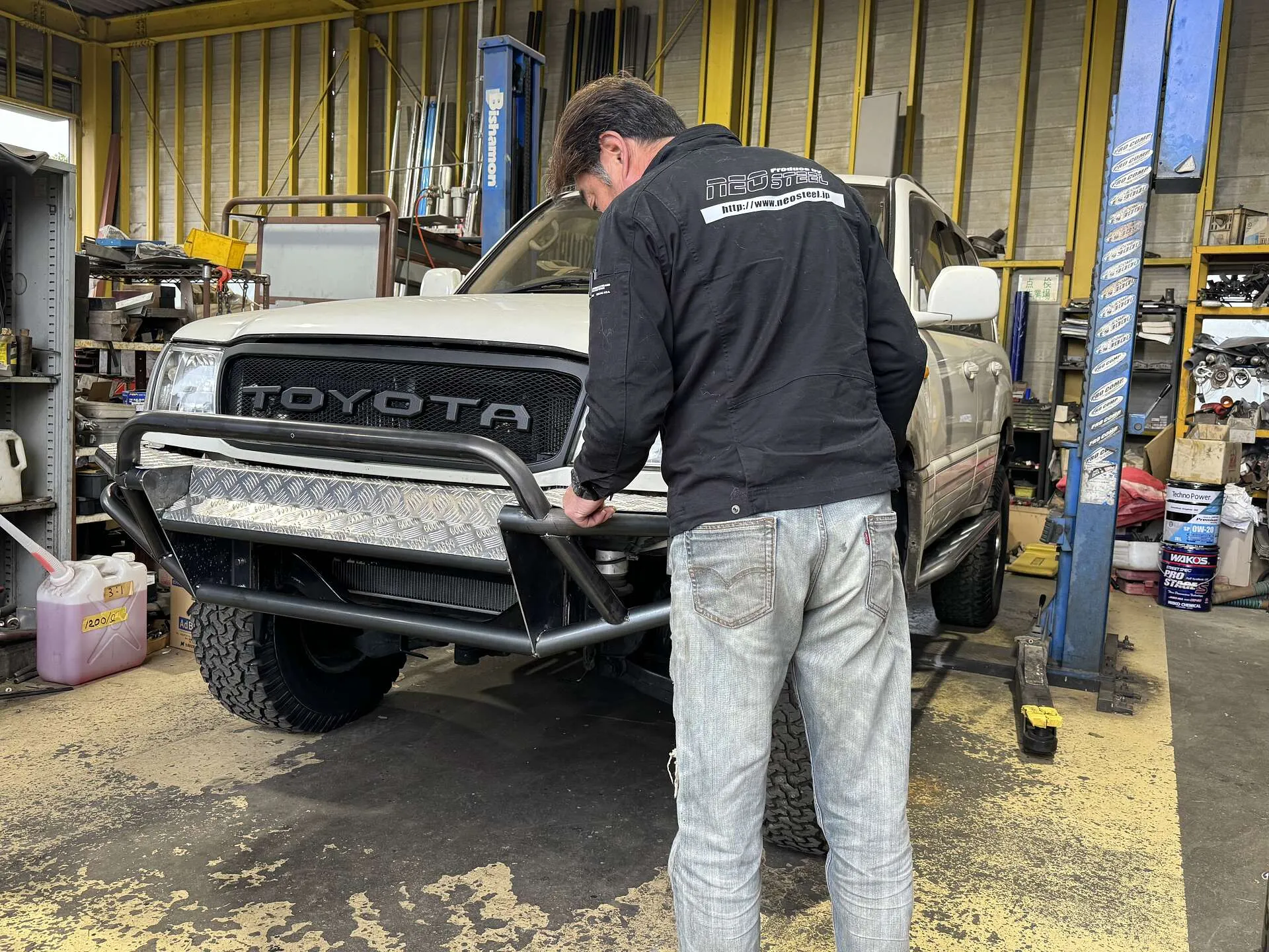 工場内①②ランクル100 デモ車製作 現在はFrバンパー製作中 ③④ジムトラ@熊本 LEDバー取付 納車前 整備 ⑤⑥ランクル77@熊本納車前整備 ⑦シエナ 車検預かり ⑧サウナトレーラー 本格的なサウナ用薪ストーブ ⑨看板犬1号2号 ボーダーコリーlandcruisertoyota。