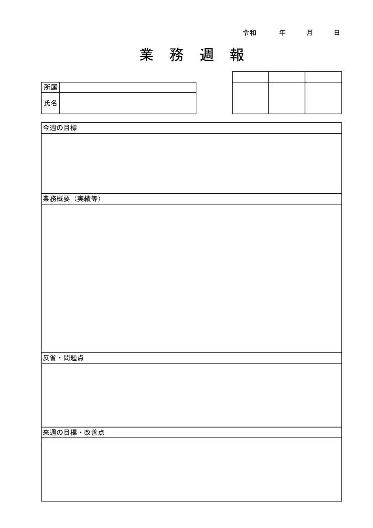 週間業務報告書テンプレート01「シンプルな項目・デザイン」 ワード・Word 無料ダウンロードテンプレートNAVI。