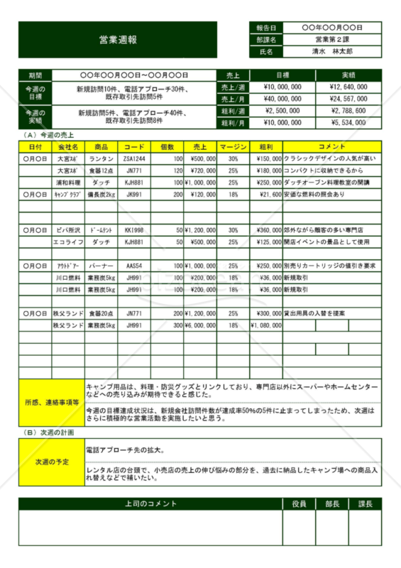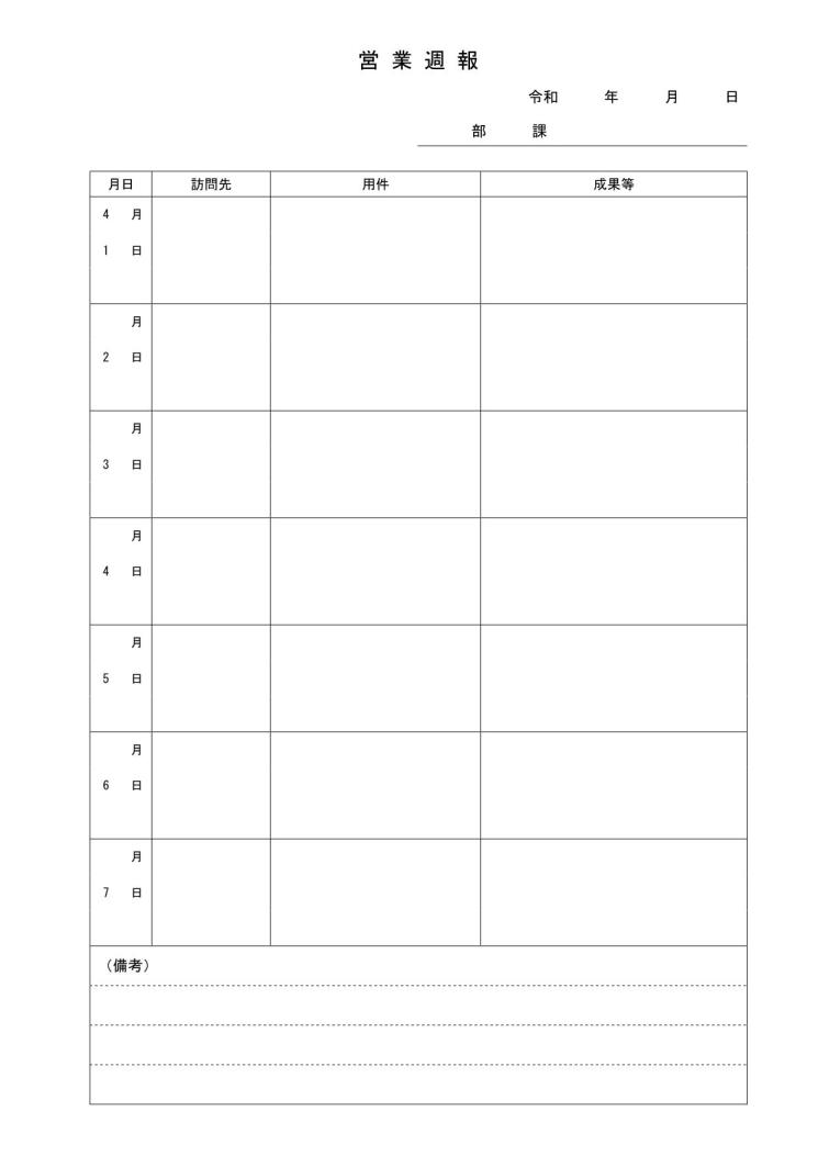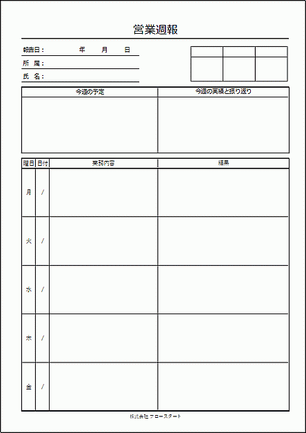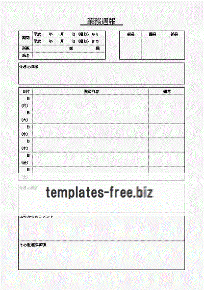 営業週報の書式・文例テンプレート Word・ワードテンプレート・フリーBiz。