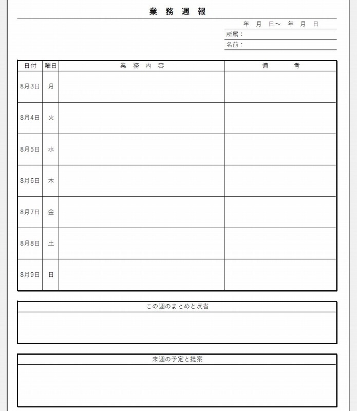 週間報告書 - 無料テンプレート公開中 - 楽しもう Office。