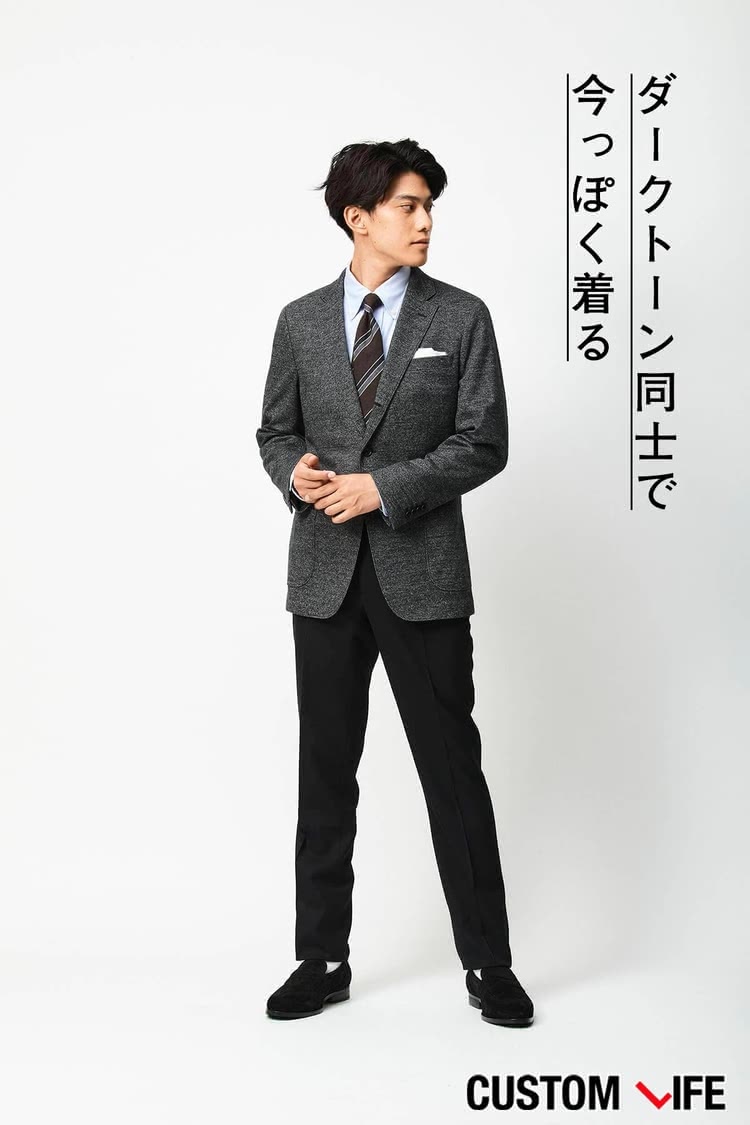 ブラックジャケット×グレースラックスで定番コーデメンズスーツのスーツスタイルMARUTOMI 公式通販。