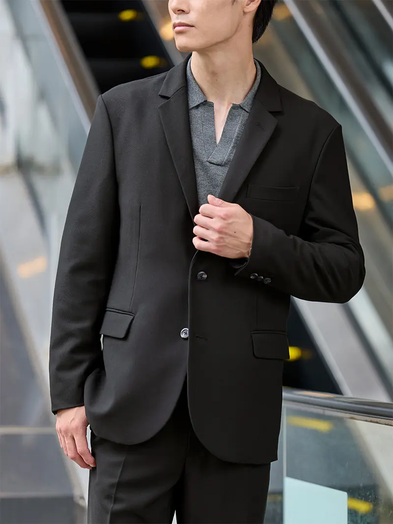 ジャケット 男性用 テーラード 襟付き 春秋 ポリエステル ゆったり ブラック 黒系 メンズ黒ジャケットで作るジャケパンコーデ30代40代50代例ビジネス・オフィス・スマートカジュアル専門通販。