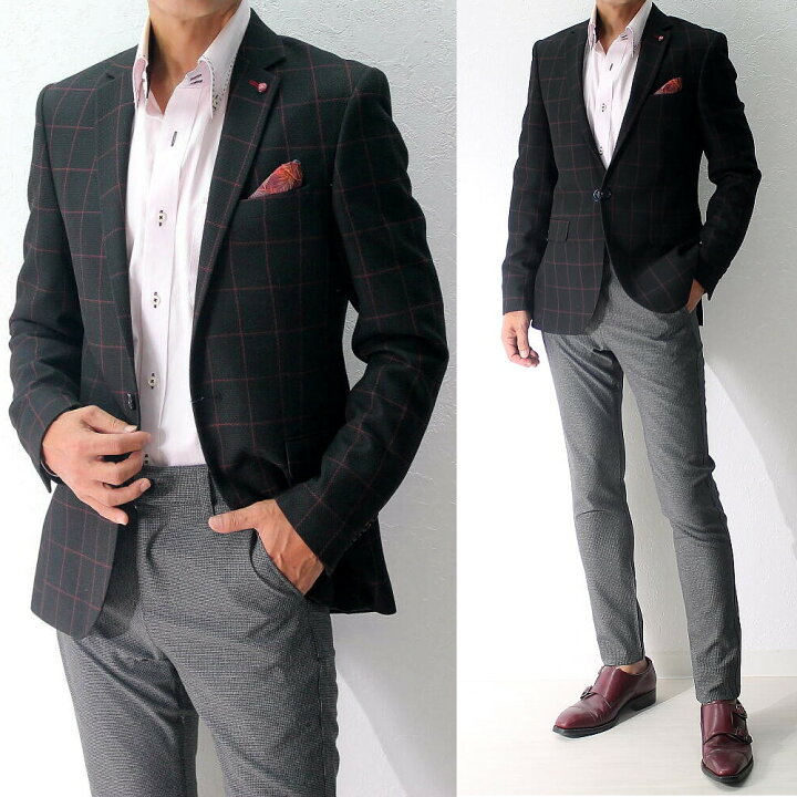 楽天市場 テーラードジャケット ブレザー チェック メンズ 秋冬春 黒 ジャケパン ビジネス 一つボタン : BIN-1 LIMITED。