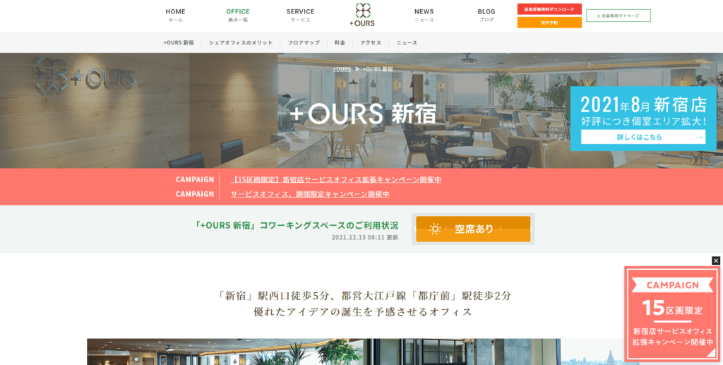 新宿のコワーキングスペース23選。個室や安いドロップインもオフィスサーチ.biz。
