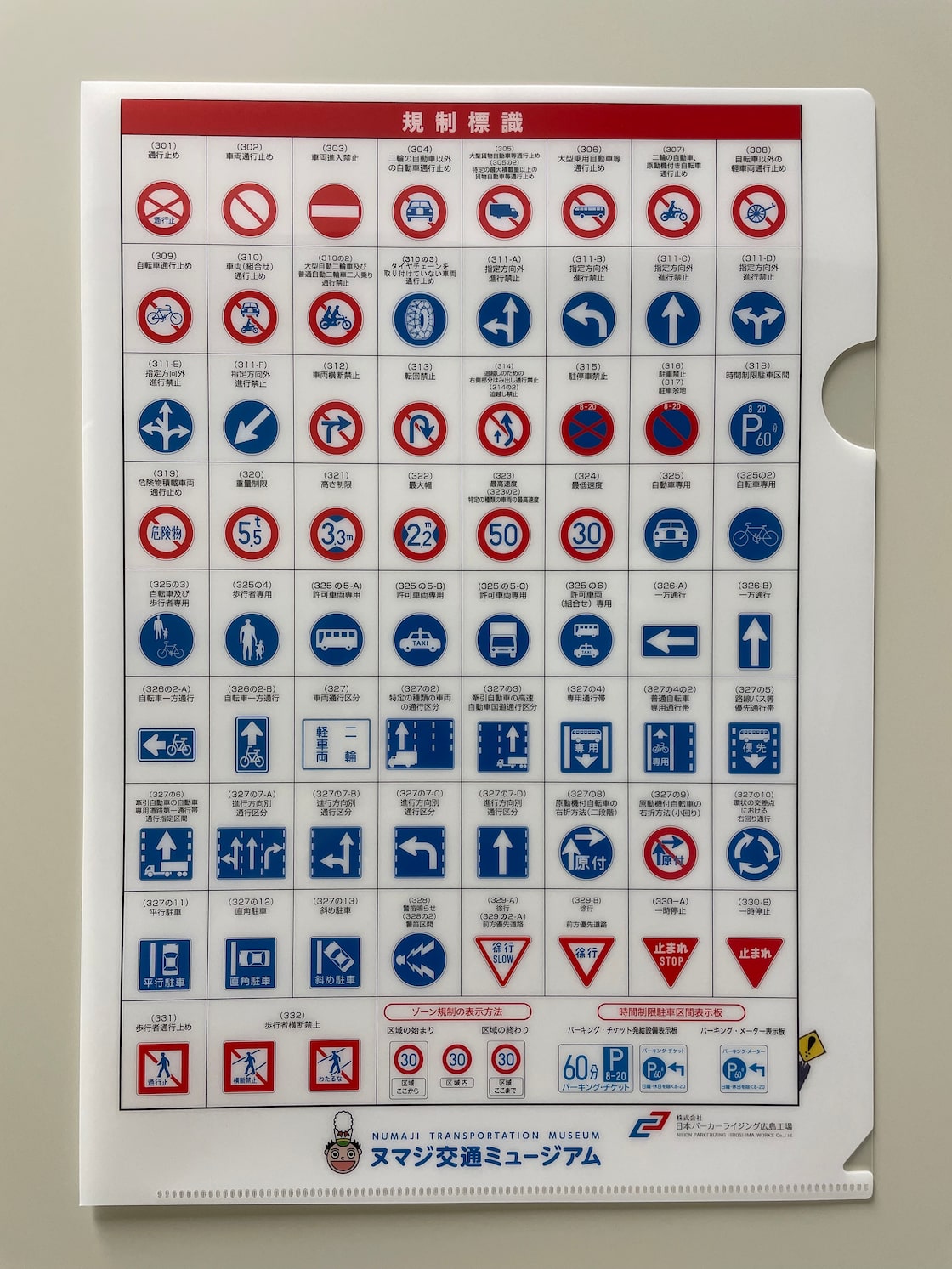 両面下敷き1枚+クリアファイル2枚の3点セット! 規制標識 警戒標識 指示標識 ヌマジ交通ミュージアムコラボPay ID。