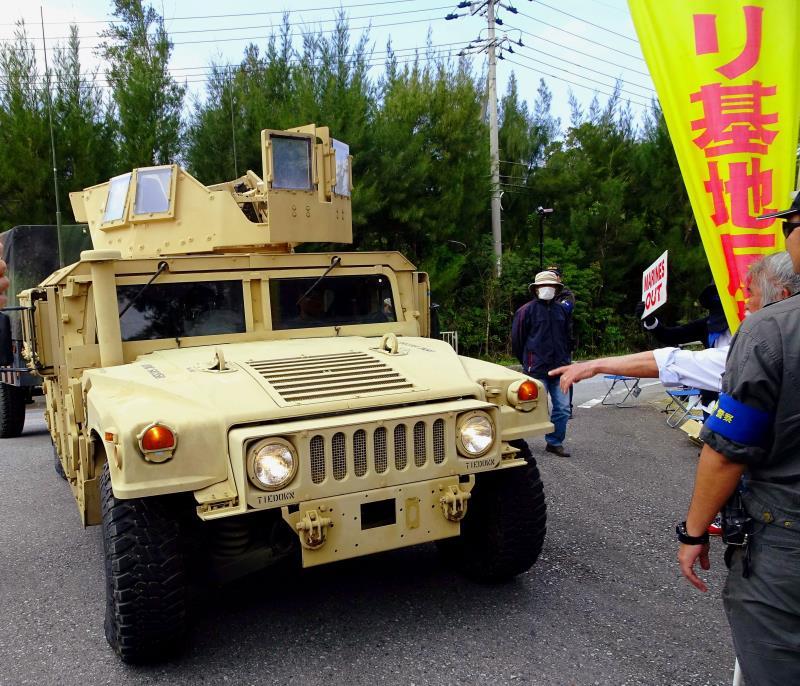 米軍車両を約2時間止めました。 2022年4月29日、東村アキノ隊員の鱗翅体験2。
