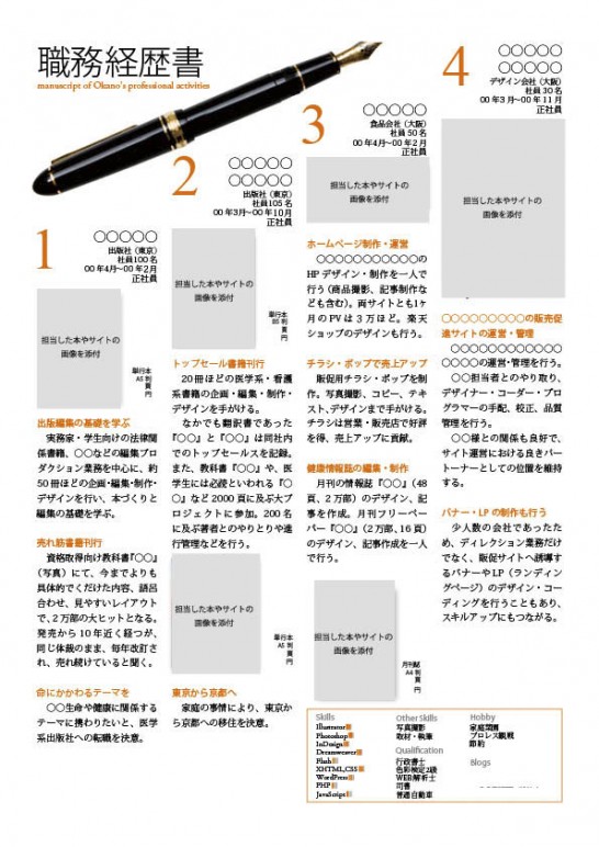 見やすさとデザイン重視の職務経歴書 フォトショップPSD素材MaterialandEx。