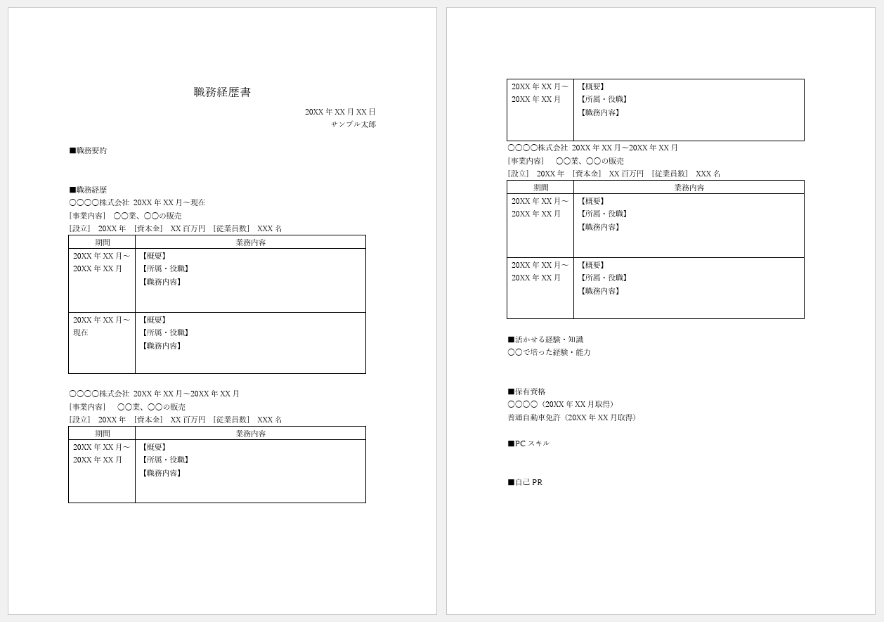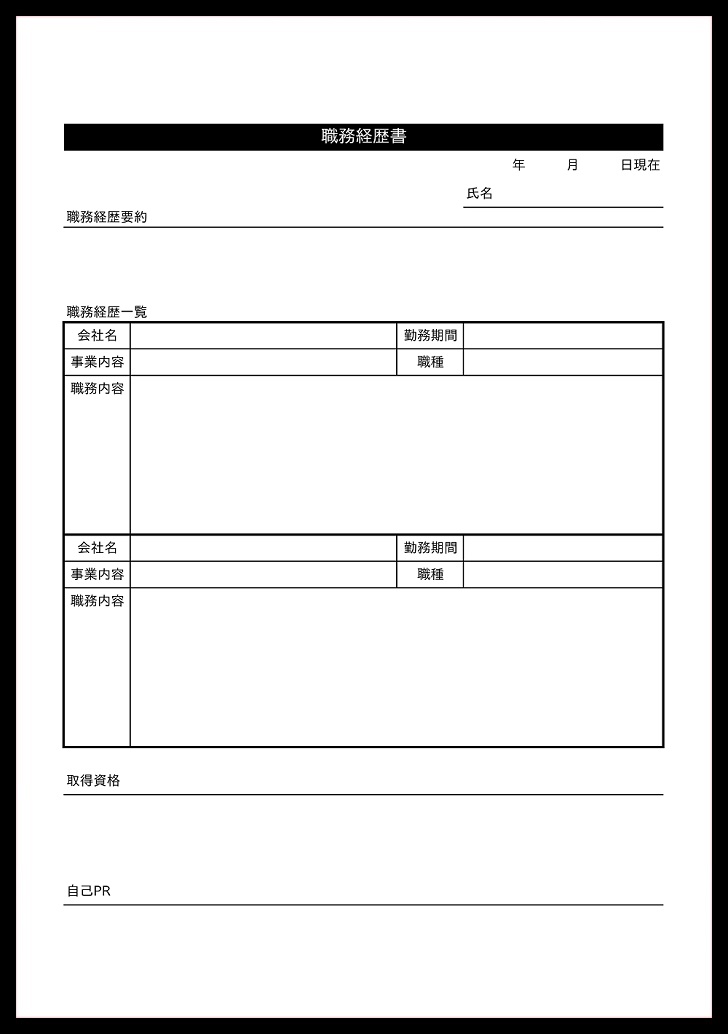解説付 職務経歴書の無料テンプレート Word・PDF・Google Docs対応ビズ研。