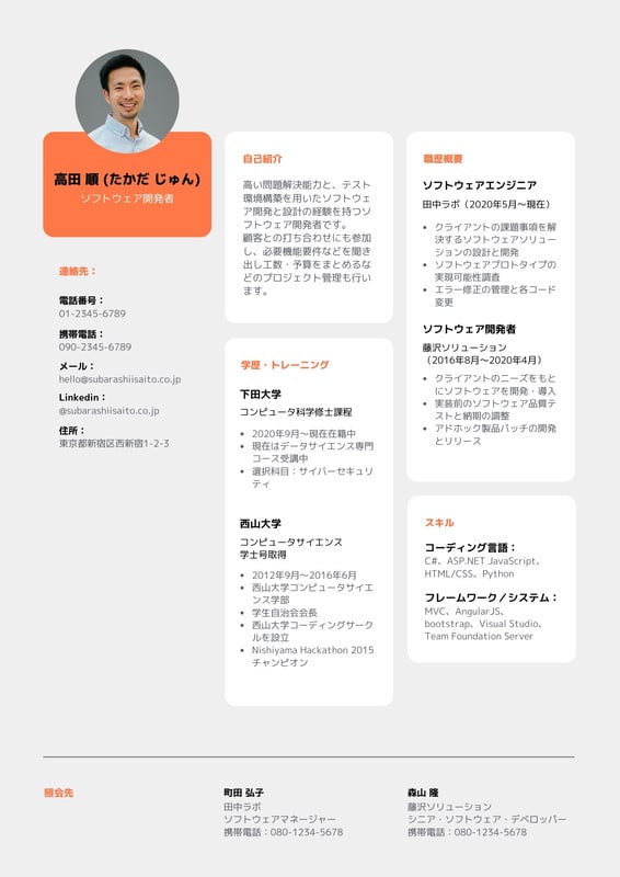 谷本 心Shin Tanimotoon X: "履歴書とか職務経歴書って読む側も作る側もダルいので、海外でよく使われるA41枚のレジュメだかCVだかが流行ると良いなって思います。少なくともIT業界ならこの内容で文句はないだろうし、良い感じのテンプレートがPinterestにもあって。