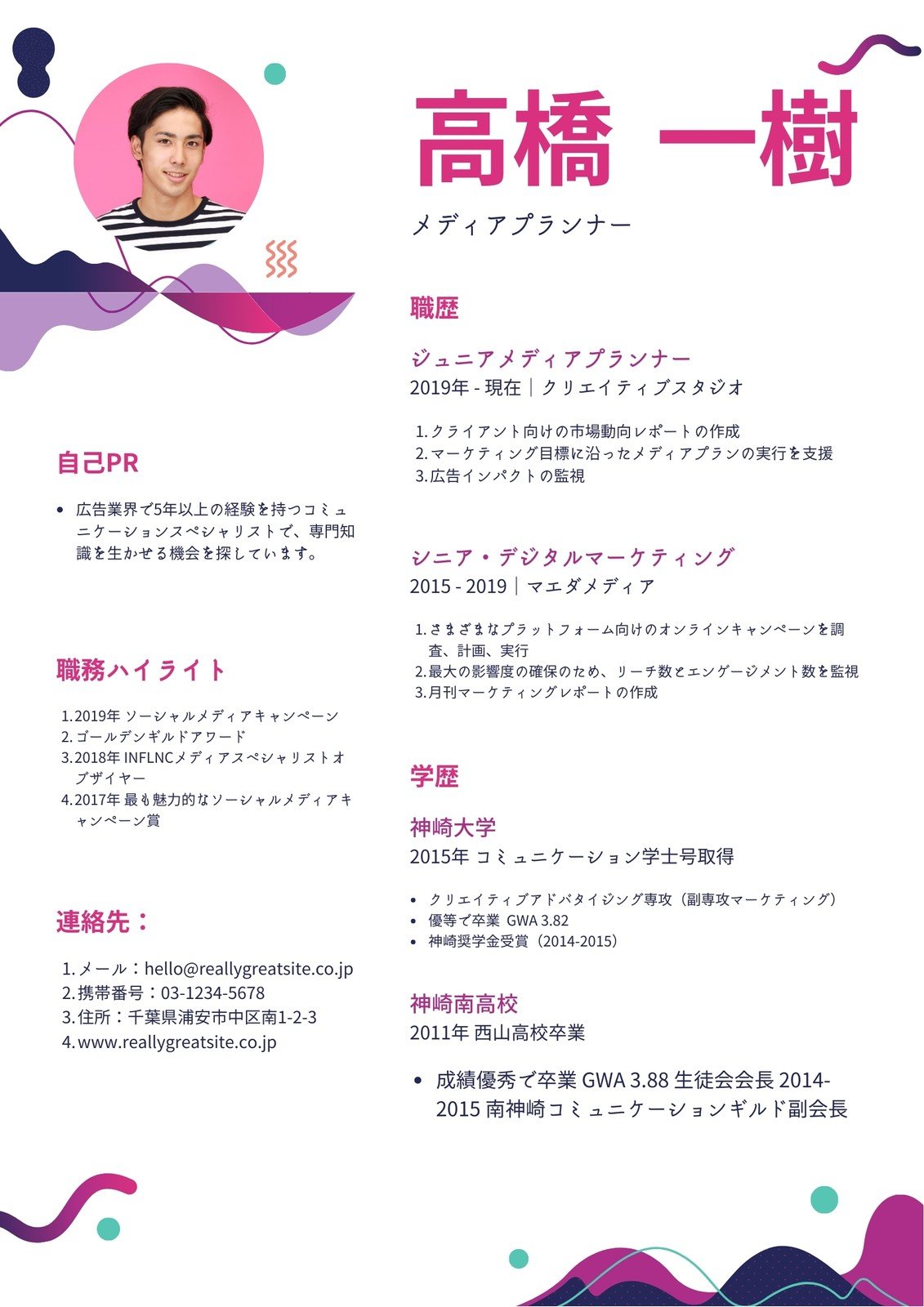 クリエイティブな職務経歴書・履歴書テンプレートでおしゃれなデザインを無料で作成!Canva。