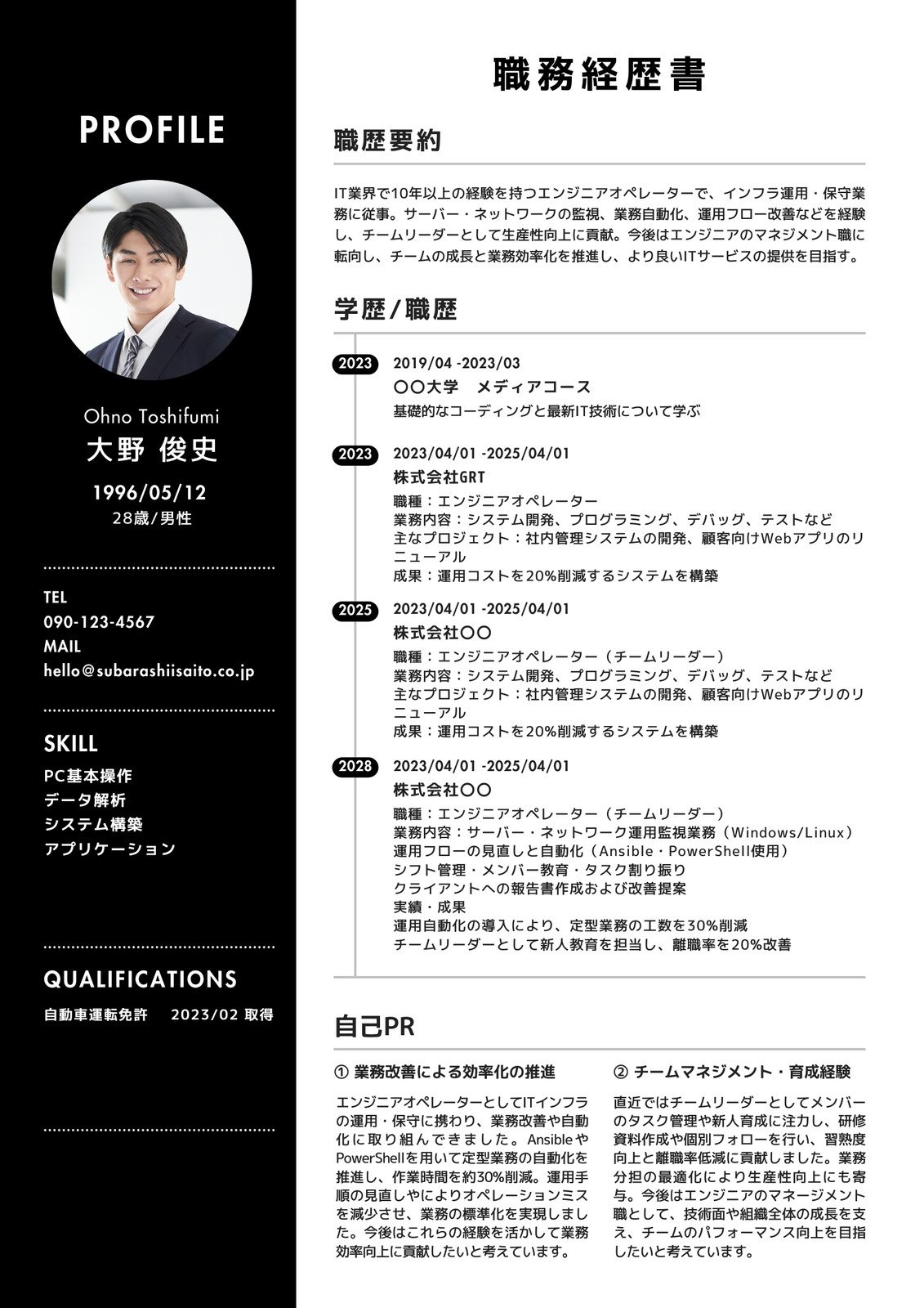 プロフェッショナルな職務経歴書テンプレートでおしゃれな履歴書デザインを無料で作成!Canva。