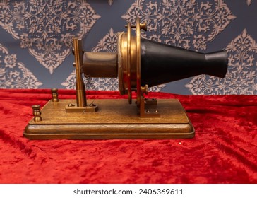 1875年の最初の実験に使われたグラハム・ベルの電話機。