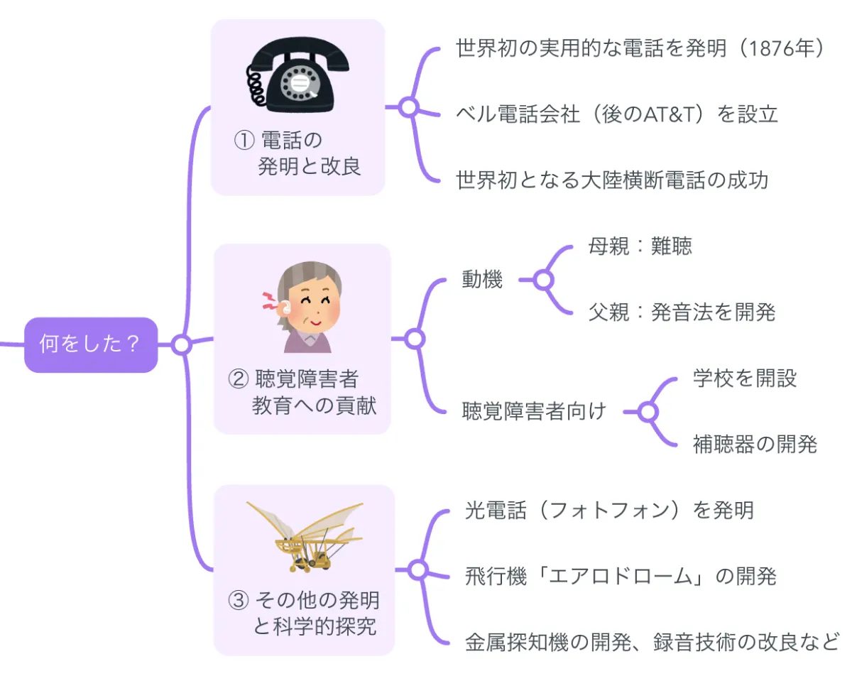 解説マップ グラハム・ベルはどんな人?何した人?図解でわかりやすく公式 MindMeister マインドマイスター。