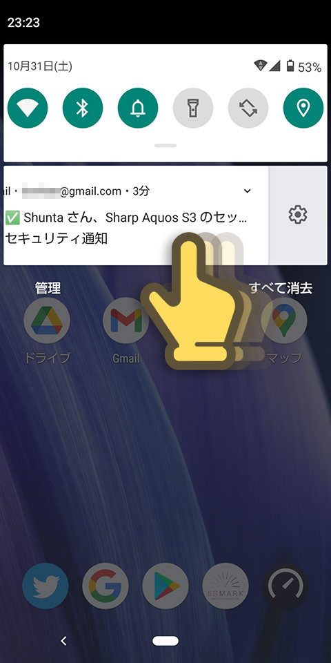 Android スマホ「通知を長押し」して「通知」設定を変更する。