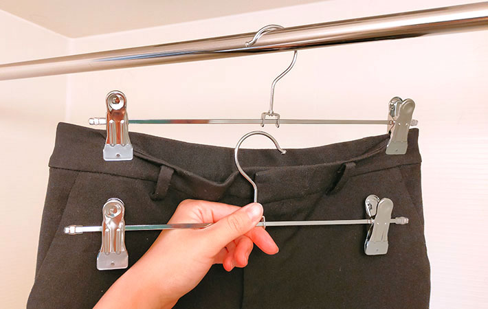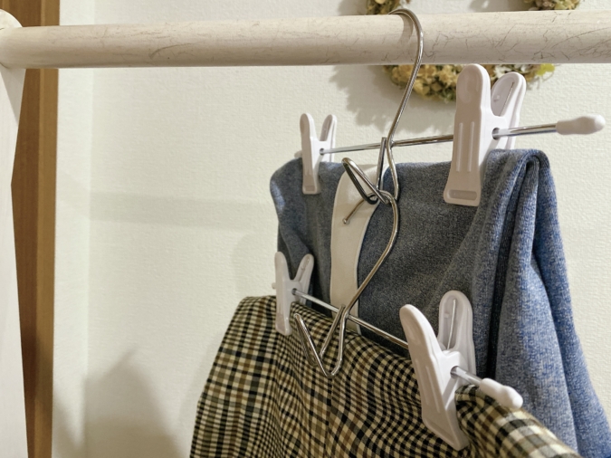 解決方法がダイソーにありました!スカートやパンツをシワなく収納するには!?サンキュ。