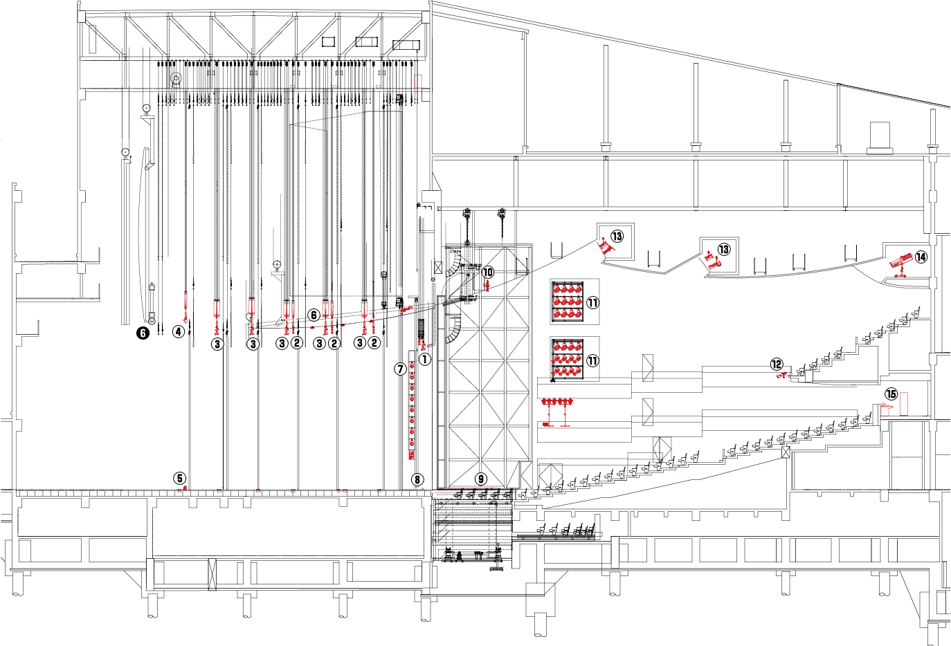 施工事例ステージシステム株式会社東京都大田区舞台・博物館の吊物機構や照明設備、音響設備、舞台迫機構など舞台装置の設計製作一貫生産 その他、舞台吊物 改修、吊物改修工事。