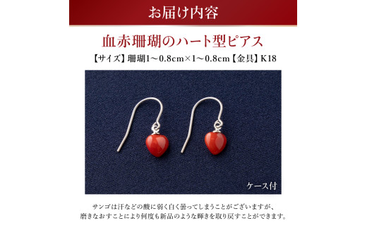 室戸産 血赤サンゴのハート型ピアス K18高知県室戸市セゾンのふるさと納税。