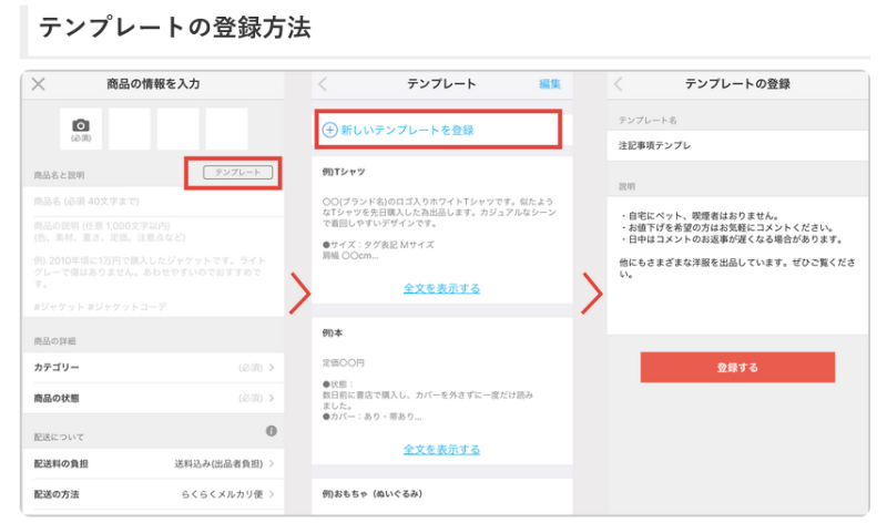 メルカリで出品する 3商品説明はテンプレート機能が便利!商品別テンプレートでスムーズな取引を特選街web。