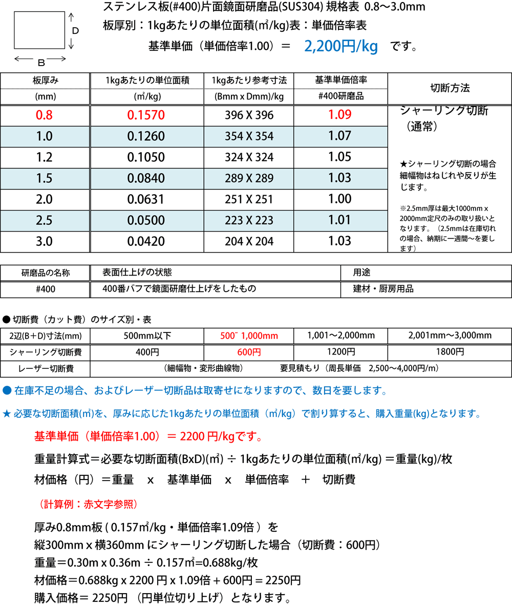 ステンレス板400 片面鏡面研磨品 SUS304板厚0.8~3.0mm 切り売り 小口販売加工金属材料の切り売り及び定寸販売 専門サイト横山テクノ。