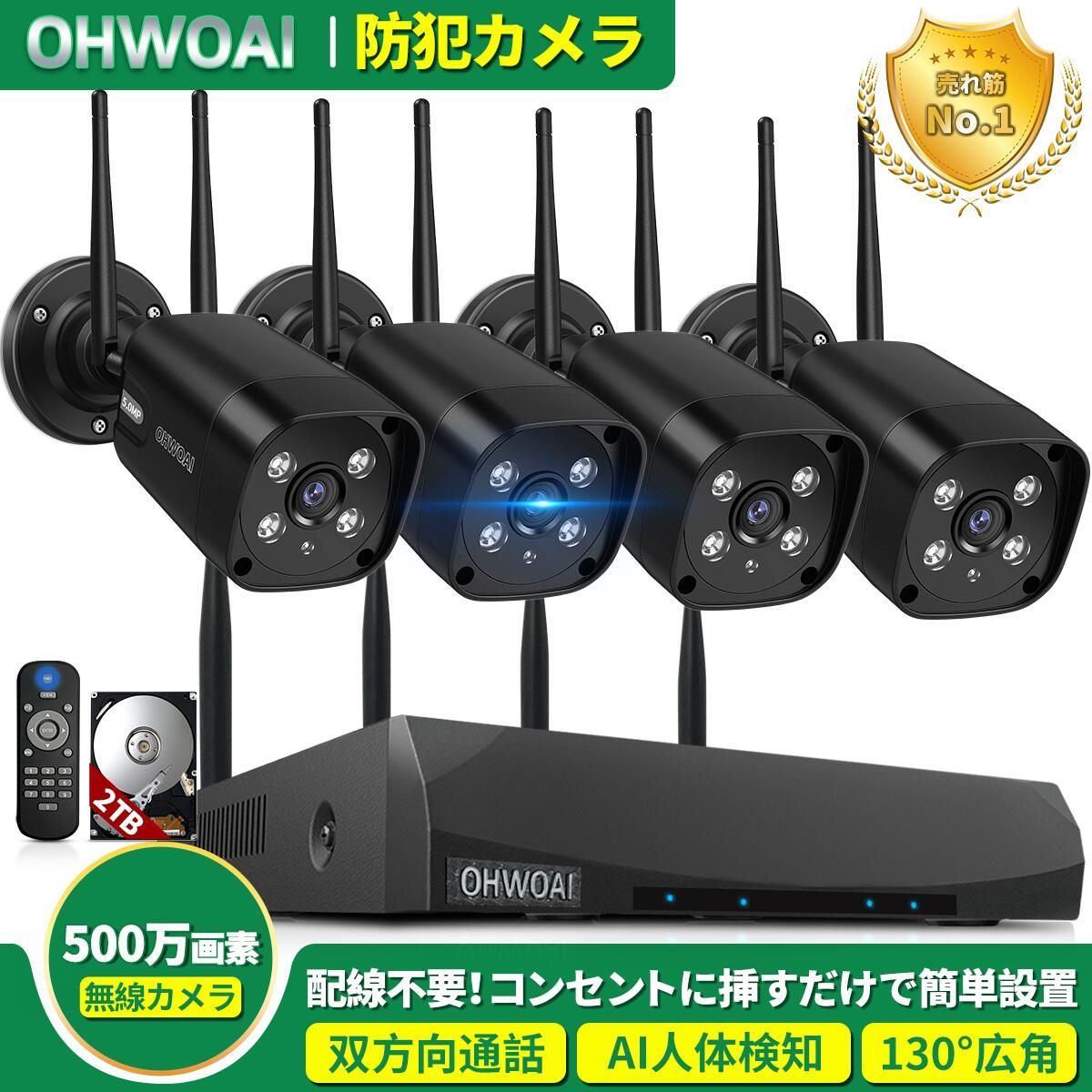 防犯カメラ 屋外 ワイヤレス wifi 5MP 1944P 遠距離暗視 音声録画 wifiダブルアンテナ ワイヤレス防犯カメラセット4台 無線便利 遠隔監視AI人体検知 高画質 暗視機能 防水防塵 屋内屋外対応 – JP OHWOAI。