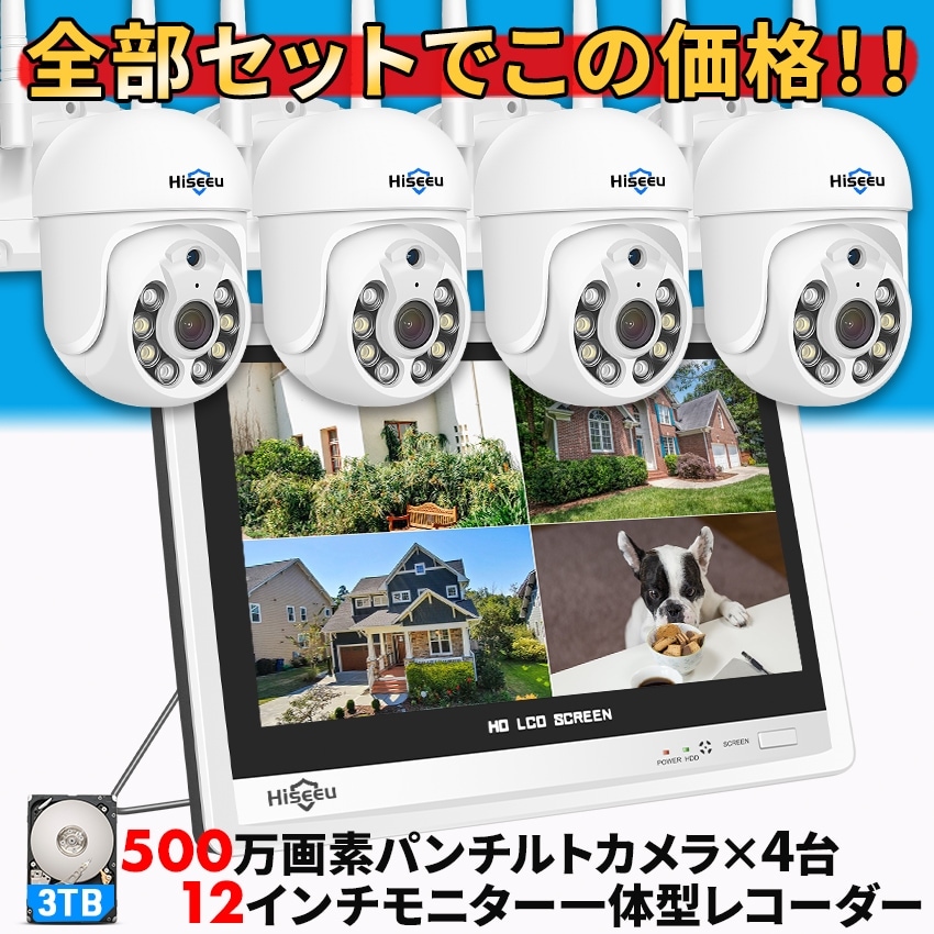 防犯カメラ 屋外 セット 家庭用 ワイヤレス wifi モニター付き カメラ4台 10.1インチ 無線 赤外 線LEDカメラ スマホ遠隔監視 10チャンネルまで増設可 4HB312白 : 千代田防犯設備 - 通販 - Yahoo!ショッピング。