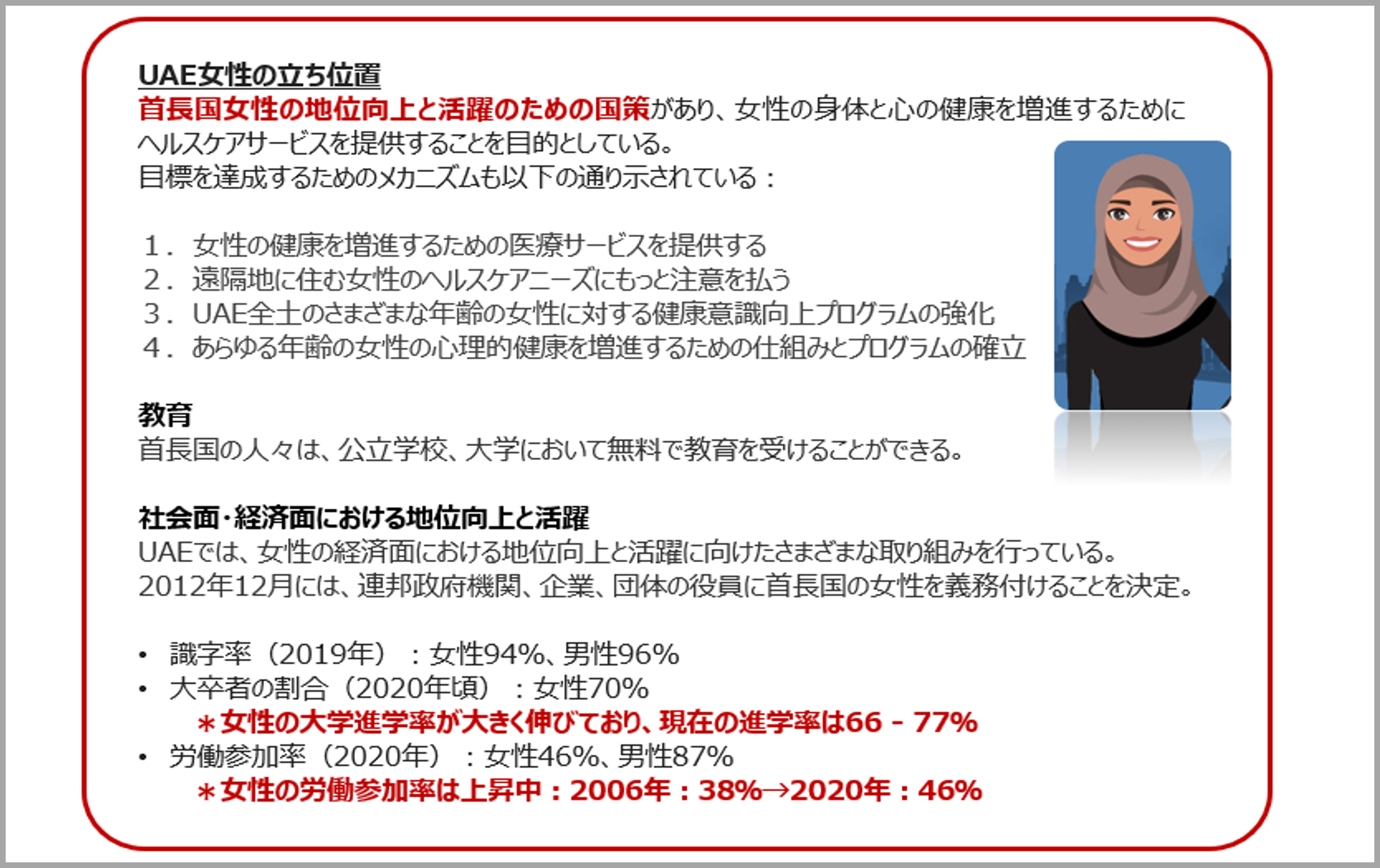 UAEにおける女性のエンパワーメント駐日アラブ首長国連邦大使館のプレスリリース。