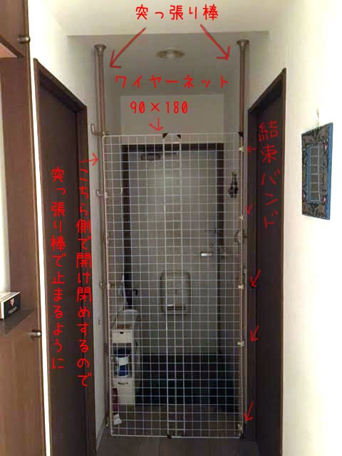 泉福朗 on X: "猫の脱走の件でお困りの方が多いみたいなんで私が作ったものを貼っておきます。突っ張り棒とワイヤーネットと百均一の結束バンド で。さすがにこの高さだと猫が乗り越えることはなく勝利を確信できますよ。結束バンドは締めすぎないように https:t.co。