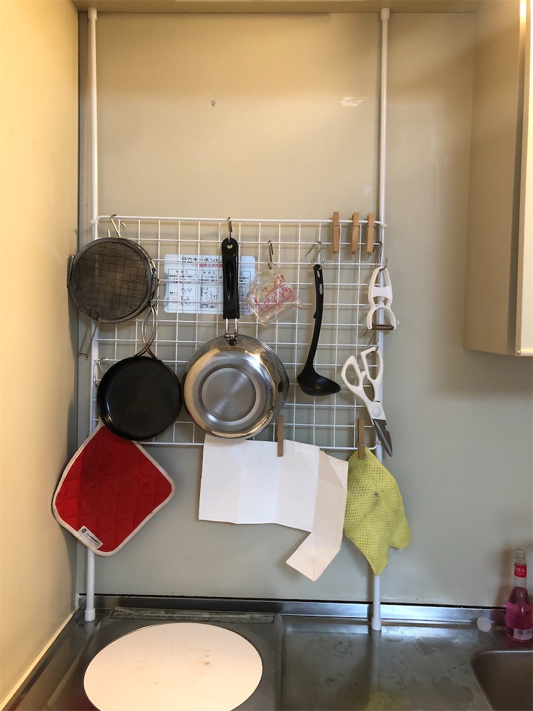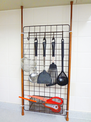 キッチンDIY ワイヤーネットとつっぱり棒でキッチンスペースに固定 – キッチンその03-07 –+プチRoom暮らし+。