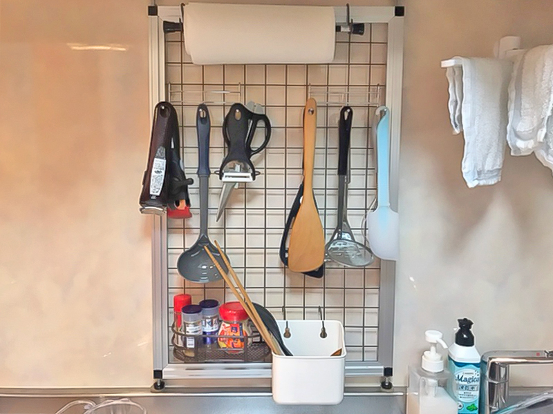 100均の突っ張り棒とワイヤーネットでスッキリ壁面収納!オリーブノート公式 - カラダに美味しい、オイルのノート。