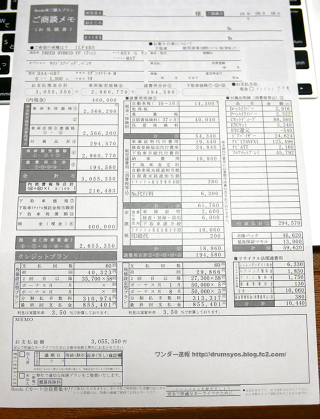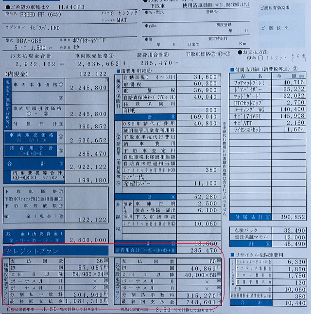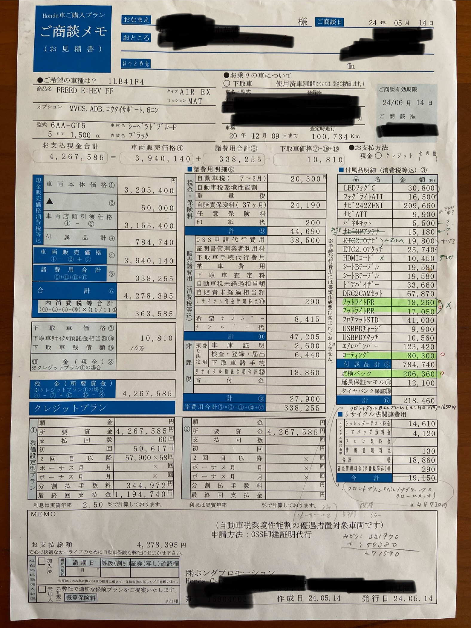 新型フリードAIR6人乗契約納車いつ?値下げ前契約見積もり公開! - えむるす Enjoy My Life Style。