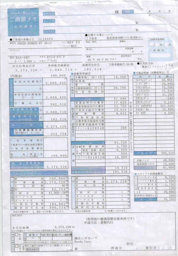 新型フリード契約 ホンダ新型フリード契約見積公開&完全マニュアル!!値引き額が気になる!?クリック必至!最新モデル契約見積りと完全解説!!blackBoxのブログJ'ilke bB QNC - みんカラ。