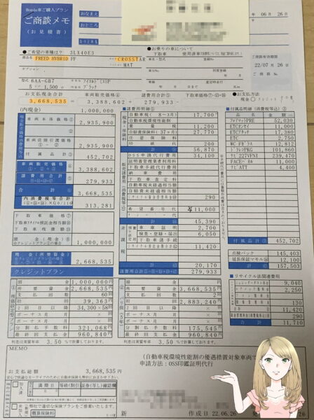 新型フリード クロスター の見積もりを公開!〇〇万円の値引き。