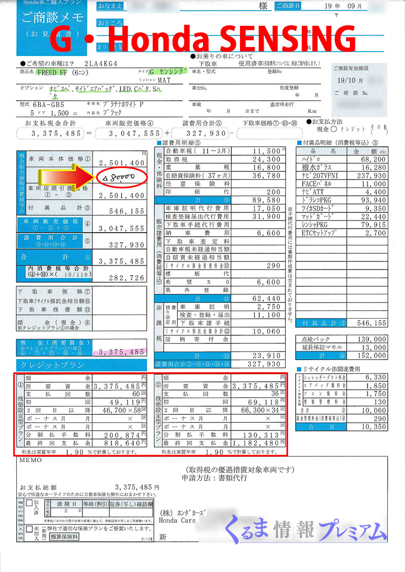 フリードの値引き最大額は?ホンダ新型フリードの見積書&目標値引きテク 2024年4月- くるま情報プレミアム。