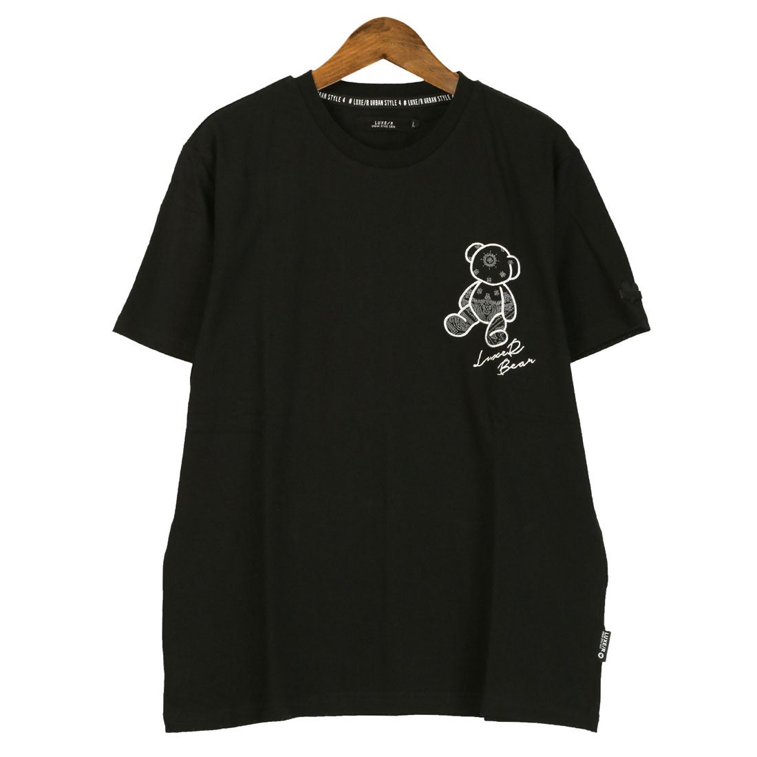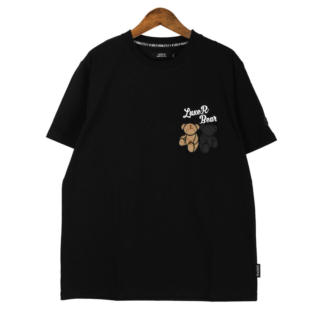 ラグスタイル LUXSTYLE LUXE R ラグジュ ワンポイントベア半袖Tシャツ トップス カットソー メンズ ブランド ブランドTシャツ ロゴ刺繍 アップリケ クマ くま テディベアブラック-ファッション通販 FASHION WALKER。