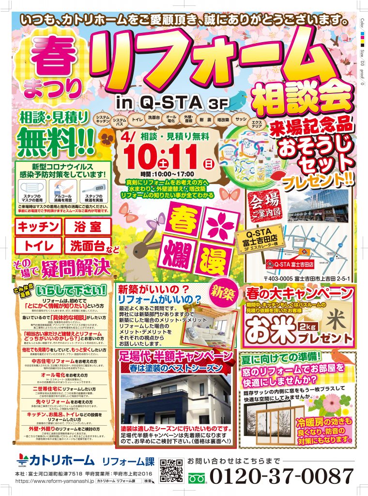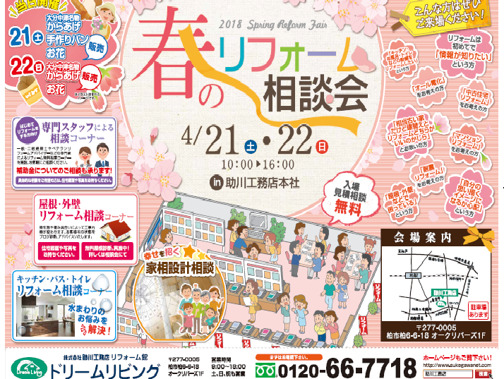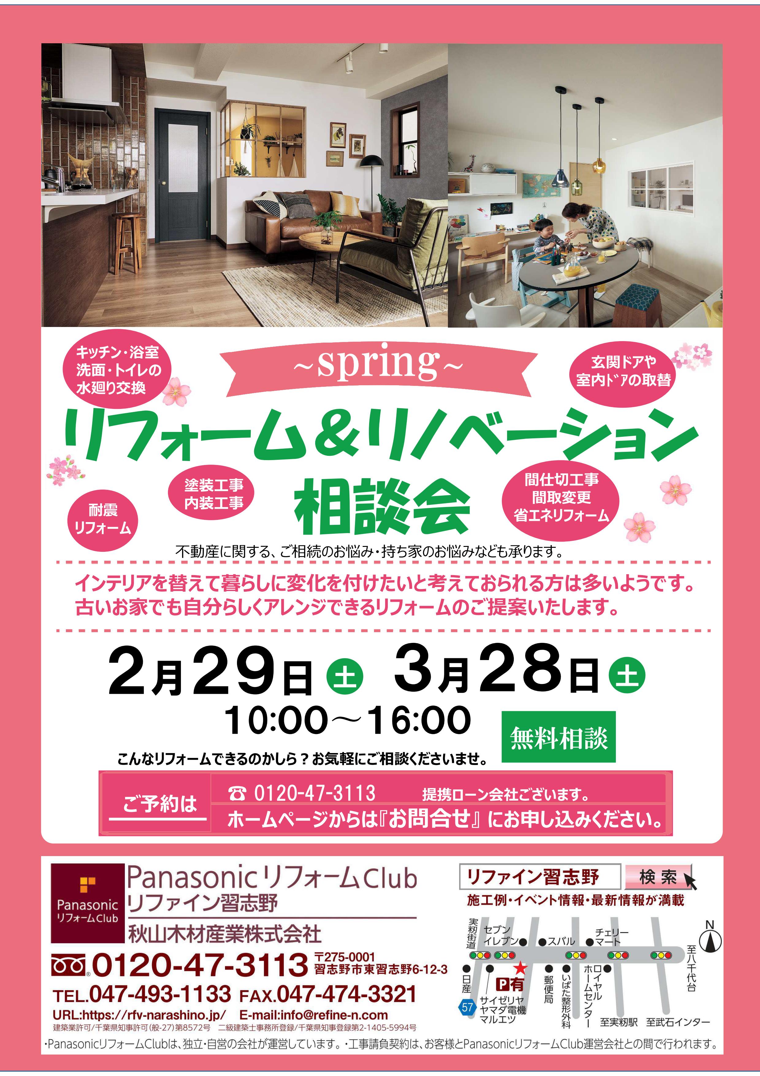 春のリフォーム相談会チラシリフォーム・外壁塗装のチラシデザイン、ホームページ制作はチームカスガイ。
