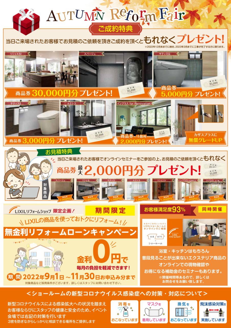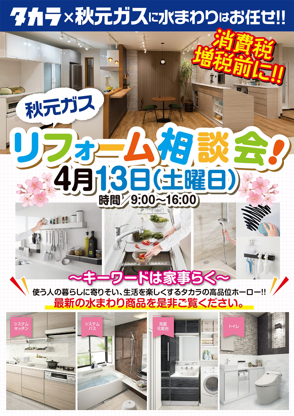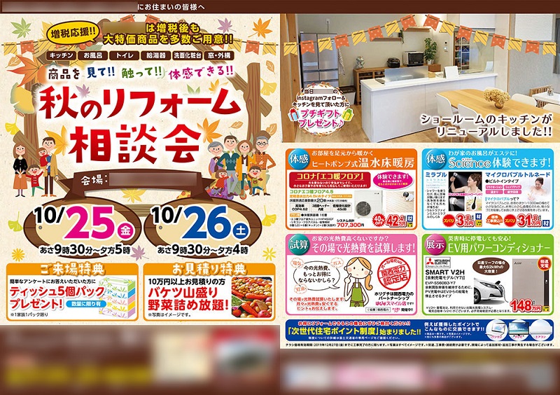 9月28日 土 リフォーム相談会開催 - 秋元ガス株式会社鹿屋地区のガス機器販売・修理・リフォーム 24時間安心サポート。