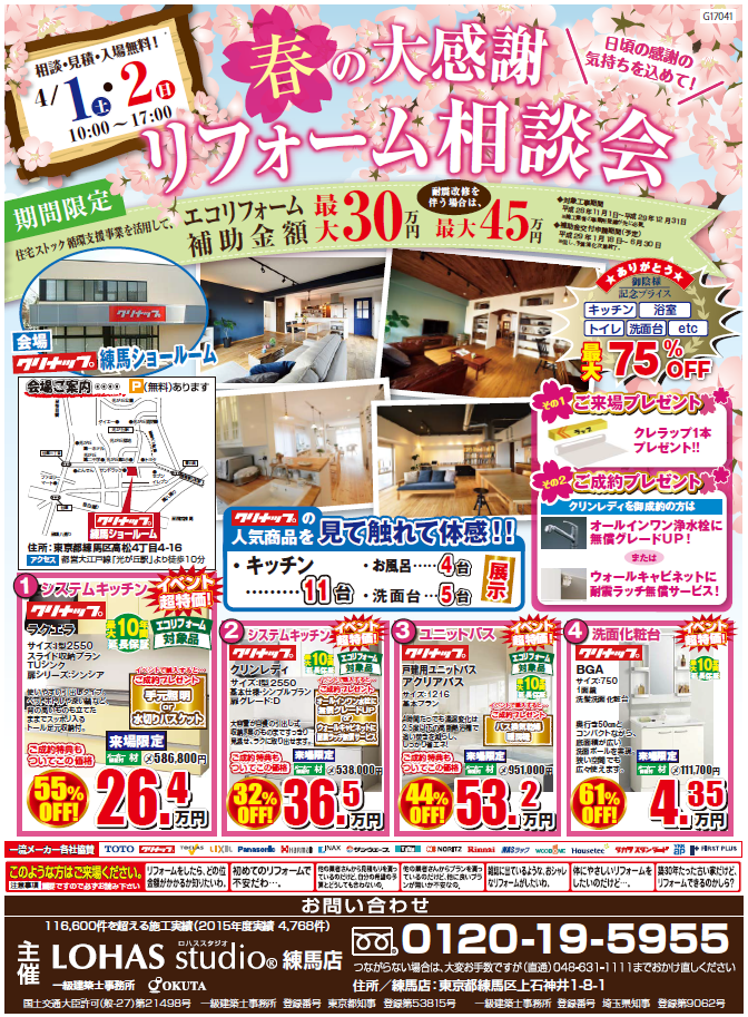4 1~ 2開催≪春のリフォーム相談会@クリナップ練馬ショールーム≫sa004@OKUTA リフォーム・マンションリフォームならLOHASstudio ロハススタジオpresented by OKUTA オクタ。