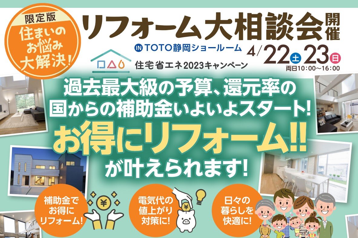 限定版 4 22 土 23 日 リフォーム相談会「過去最大級の予算・還元率の補助金」でお得にリフォームを実現! ご来場プレゼントあり♪iecominattoku住宅一級建築士事務所が運営するライフスタイルウェブマガジン。
