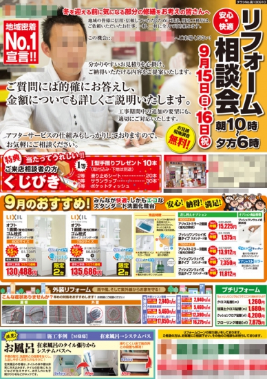 リフォーム相談会のイベントチラシリフォーム・外壁塗装のチラシデザイン、ホームページ制作はチームカスガイ。