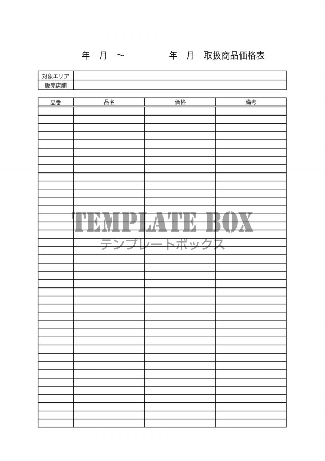 エクセル商品リスト-A4縦と横の2種類の表を掲載 - 無料でダウンロードできるフォーマット テンプレート・雛形。