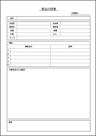 製品仕様書の雛形書き方・Excel作成の2種が無料ダウンロード。