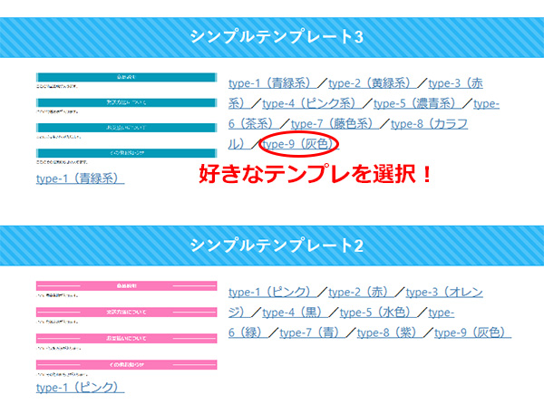 PC用商品ページでの商品情報レイアウト テンプレートA~G楽楽リピート 楽楽CART FAQサイト。