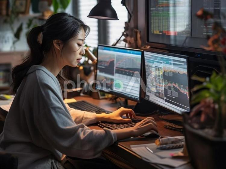女性デイトレーダー 在宅 - No: 27701163写真素材なら「写真AC」無料 フリー ダウンロードOK。