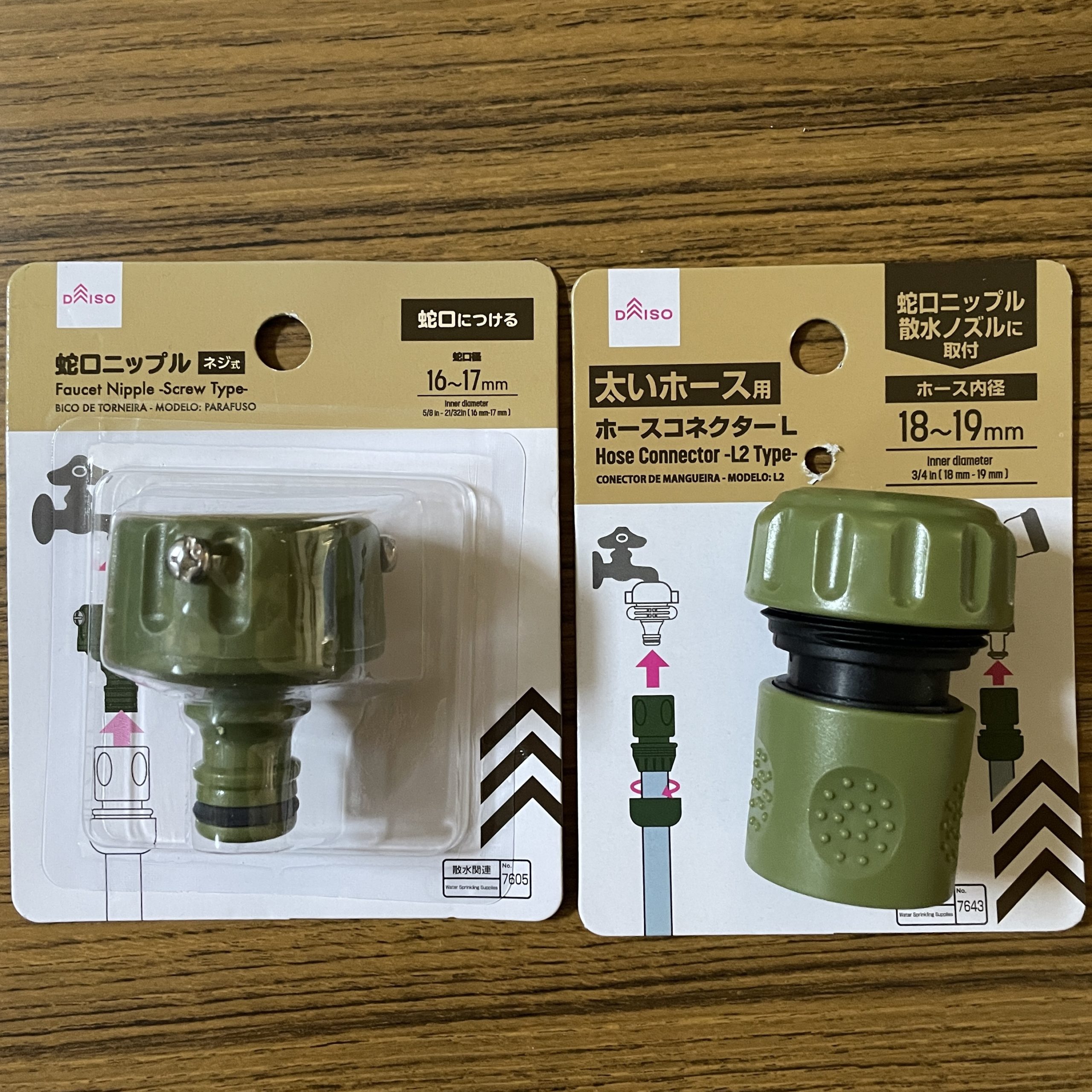 ダイソー「蛇口ニップル」は散水ホースの接続に最適。