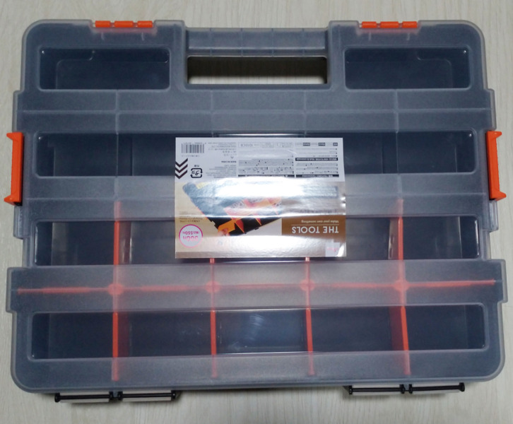 ダイソーの工具小物入れケース 500円 ・仕切り調節可能で釣り具入れや救急箱にも使えるいろいろやってみる。
