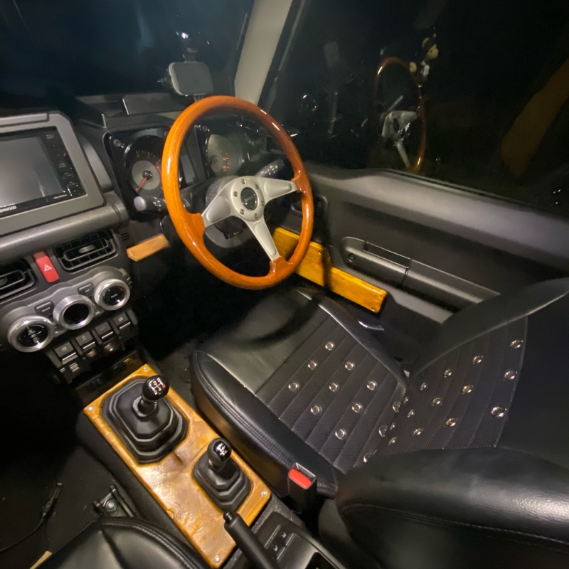 ニューデモカーの内装です🤩 ハンドルがめちゃくちゃカッコいい😍😍 トシさんのセンスを取り入れて本当に良かったです😭💕🙏オートルビーズジムニージムニーシエラジムニーカスタムジムニー女子jimnyjimnysierajimnylifejimnyloversjimnyoffroad。